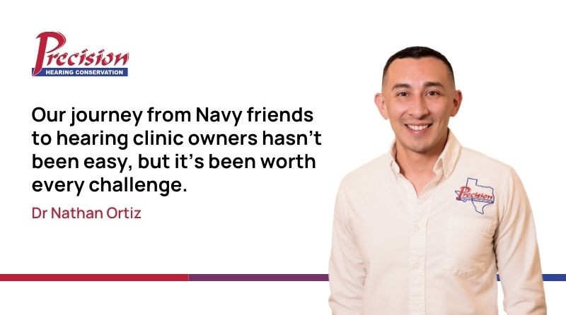 In 2013, while we were both stationed in San Diego, the idea of starting a hearing conservation business in Texas first came up. We both had a passion for audiology and saw a real need for specialized hearing care, especially for workers exposed to hazardous noise.
